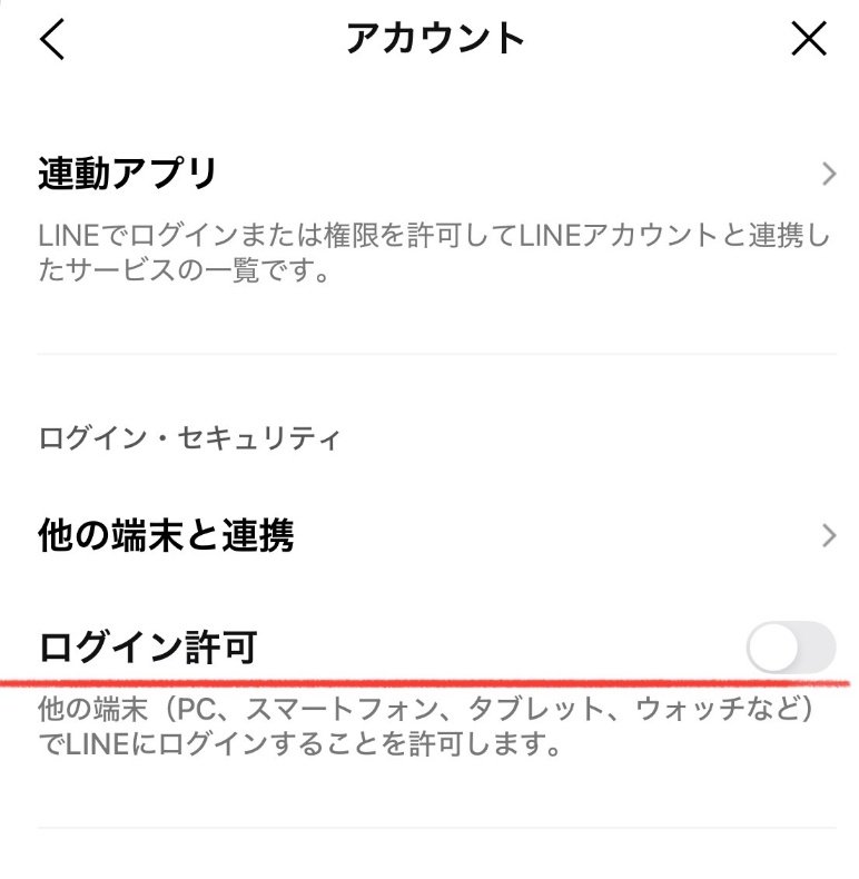 ホーム→設定→アカウント→【ログイン許可】をOFFにしておきましょう
