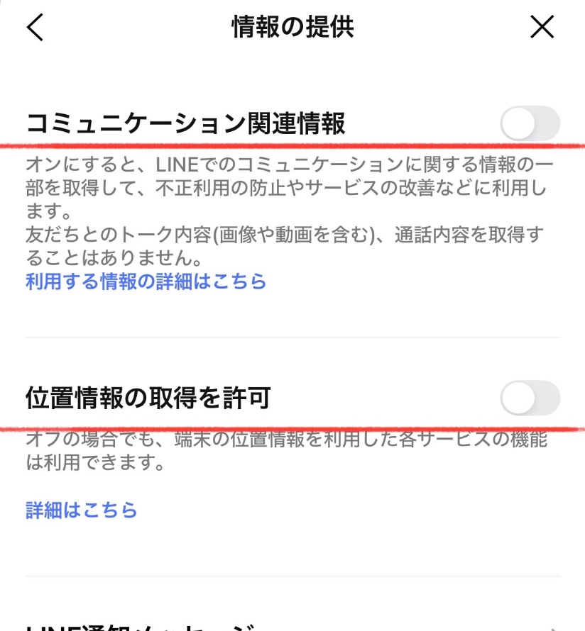 こちらもLINE運営者のサービスの質の向上、企業開発の為に情報を提供する、と言うもので